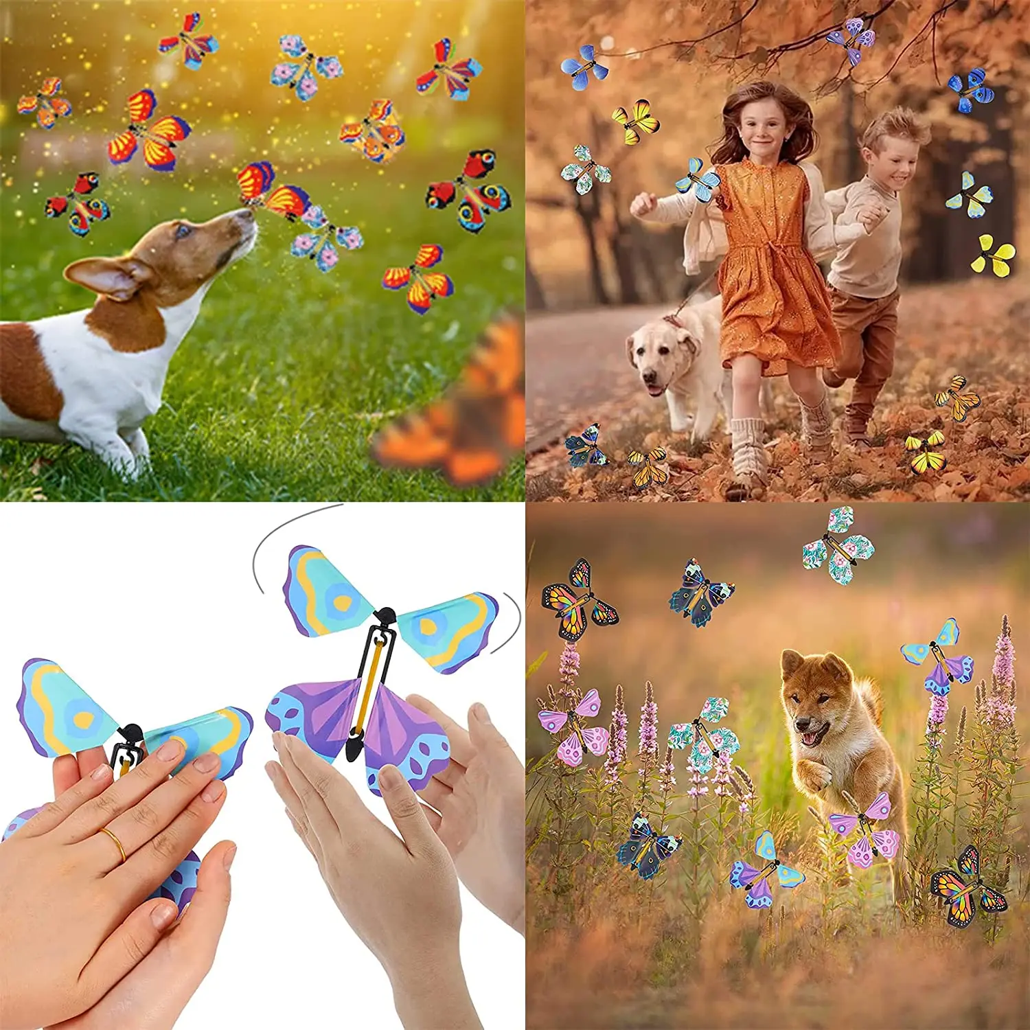 Magic Flying Butterflies Wind up Toy in the Sky Bookmark Greeting Cards Rubber Band Powered Kids Magic Props Surpris Gift